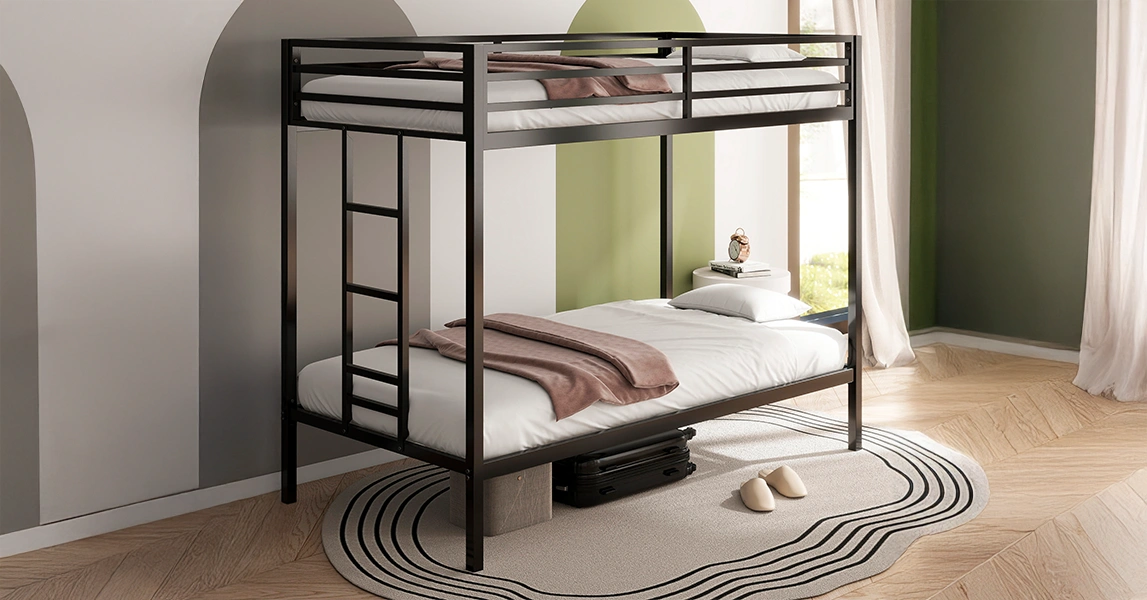 Featuring a matte square metal frame, this bunk bed delivers a clean, modern look that complements any decor style — from minimalist to industrial. Its sleek, space-saving structure makes it ideal for small rooms, dorms, rentals, or institutional settings.
