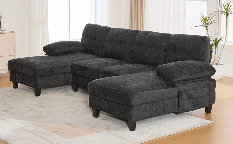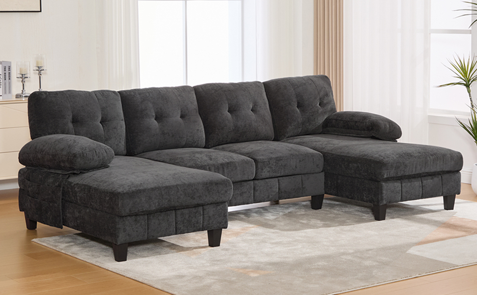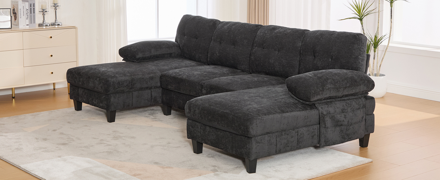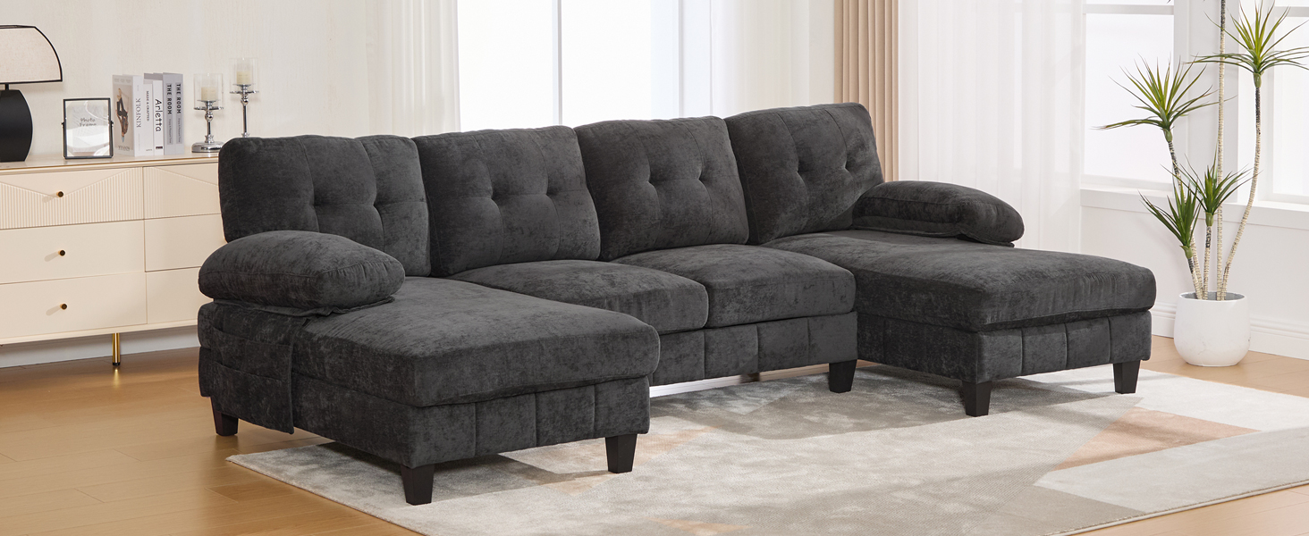 Experience the pinnacle of comfort and functionality with the Langford 103.5″ U-shaped Sectional Sofa. Designed for grand relaxation, this expansive piece features a unique dual-chaise layout and smart storage solutions, creating a luxurious and organized hub for family and guests in your living space.