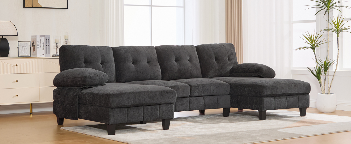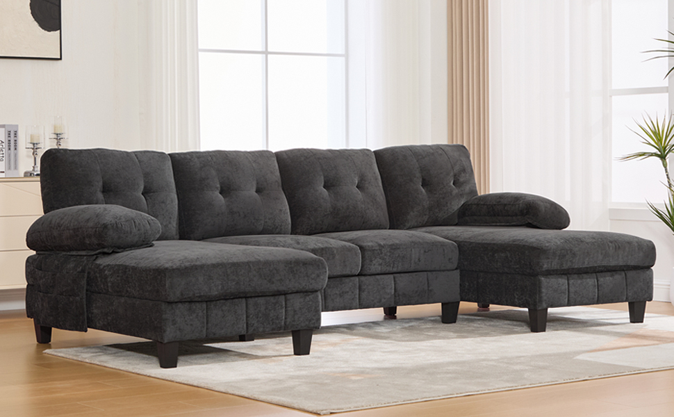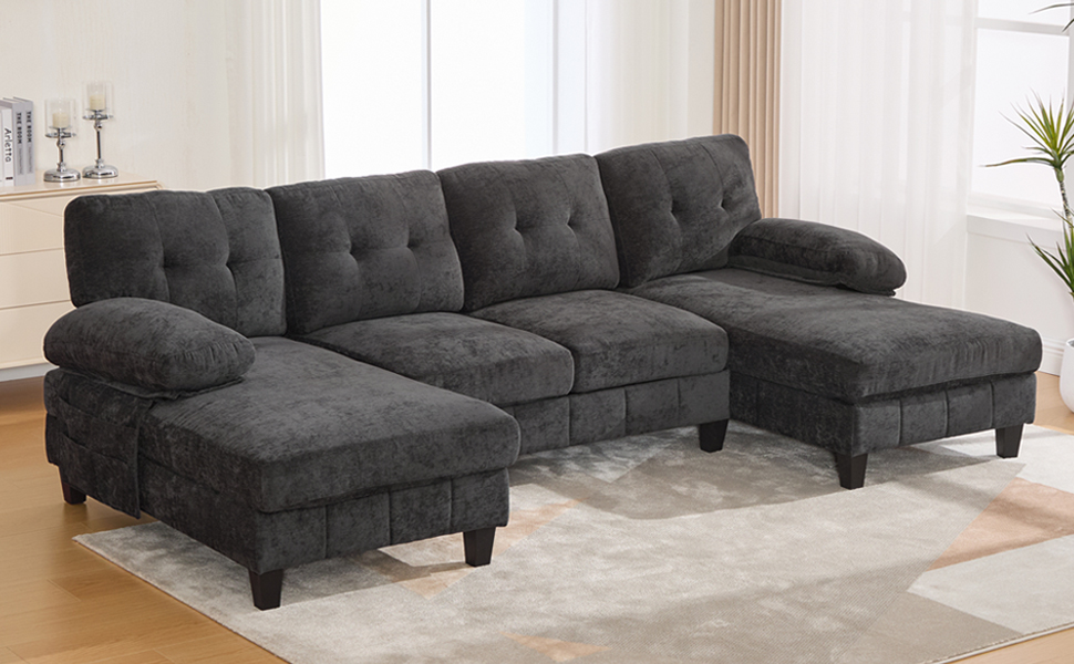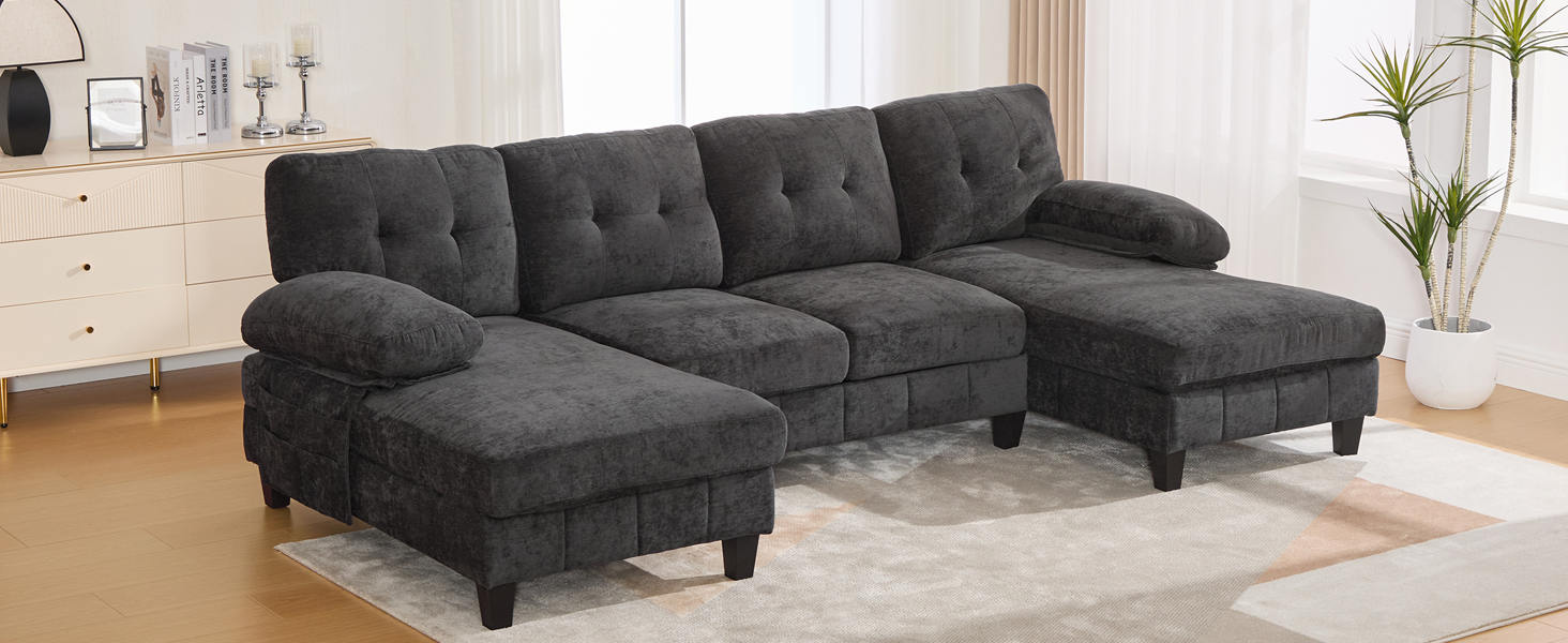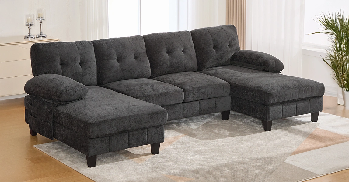 Experience the pinnacle of comfort and functionality with the Langford 103.5″ U-shaped Sectional Sofa. Designed for grand relaxation, this expansive piece features a unique dual-chaise layout and smart storage solutions, creating a luxurious and organized hub for family and guests in your living space.