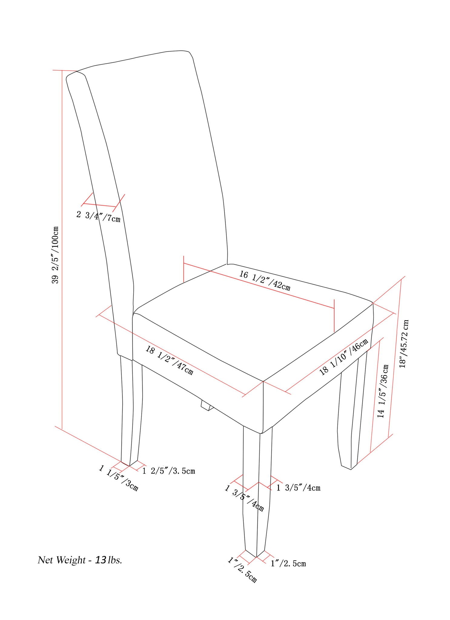 18.9"W x 22.4"D x 39.8"H - 12.6 lb