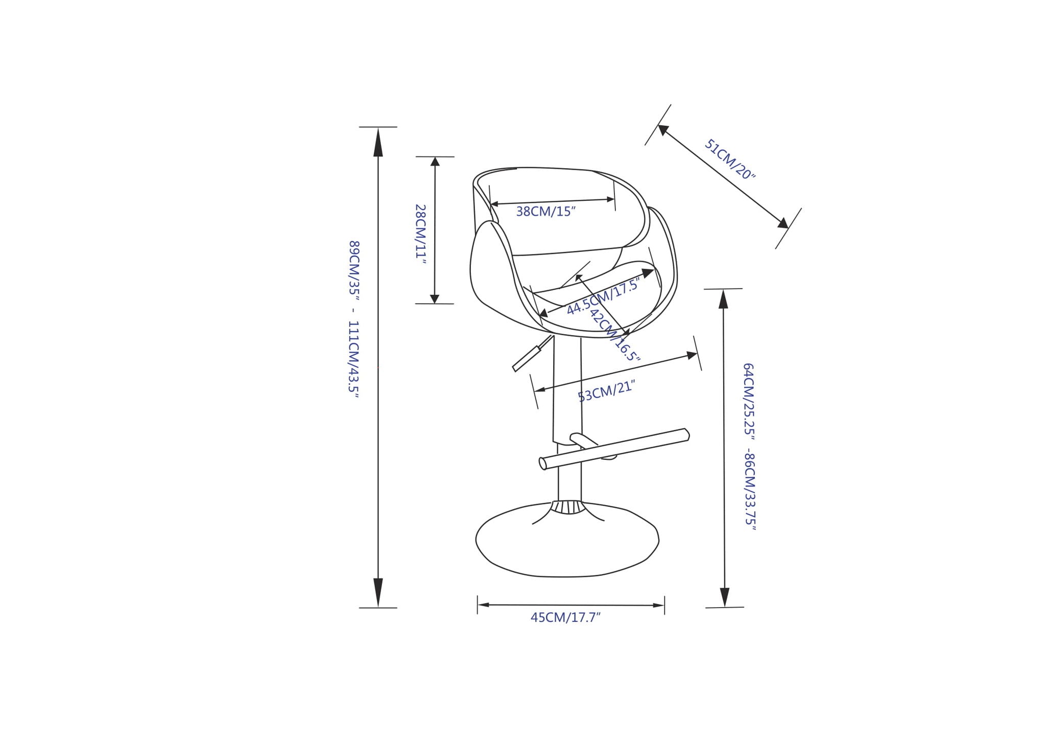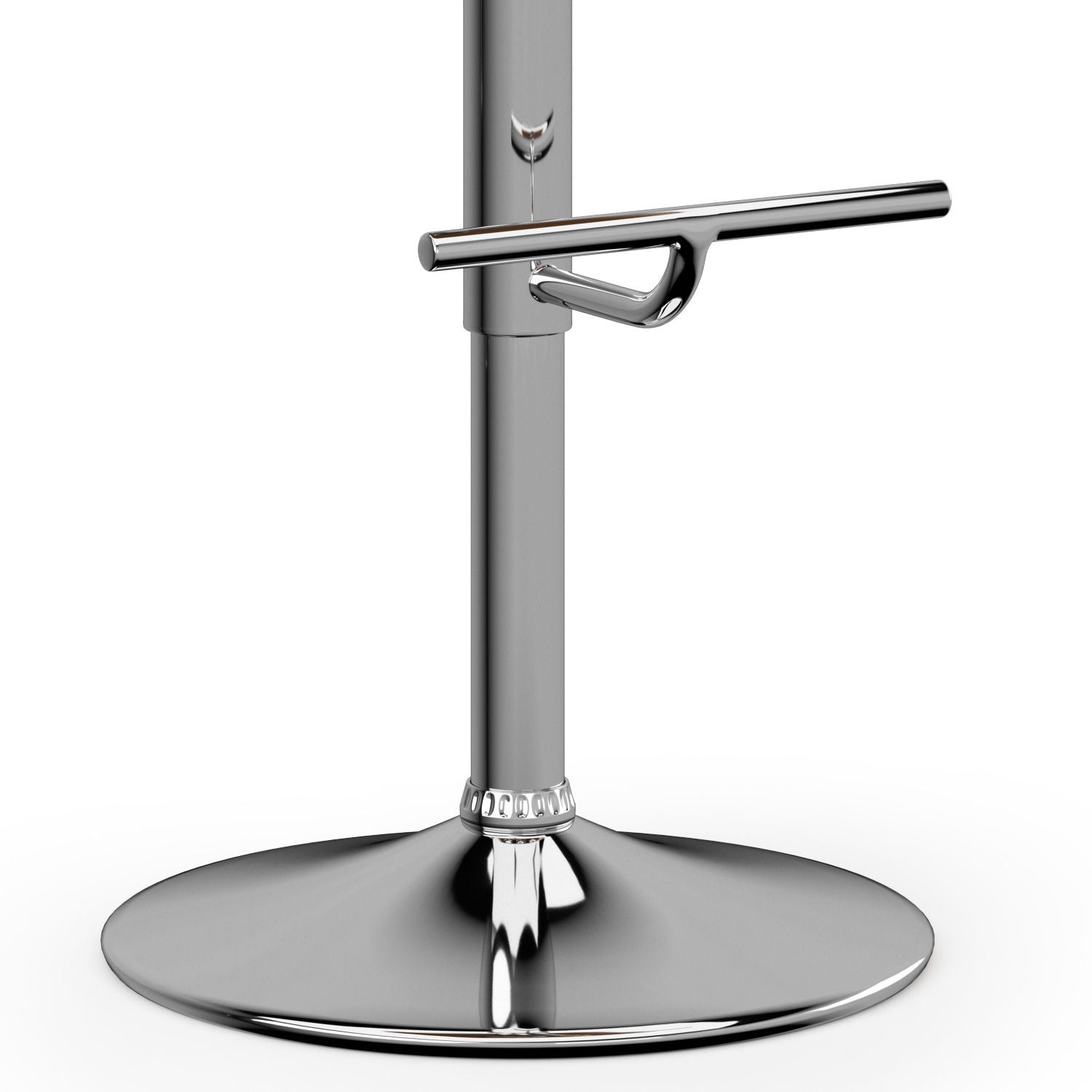 - Features sturdy polished base with 360 degree swivel and footrest. Seat Adjusts from bar to counter height with gas lift