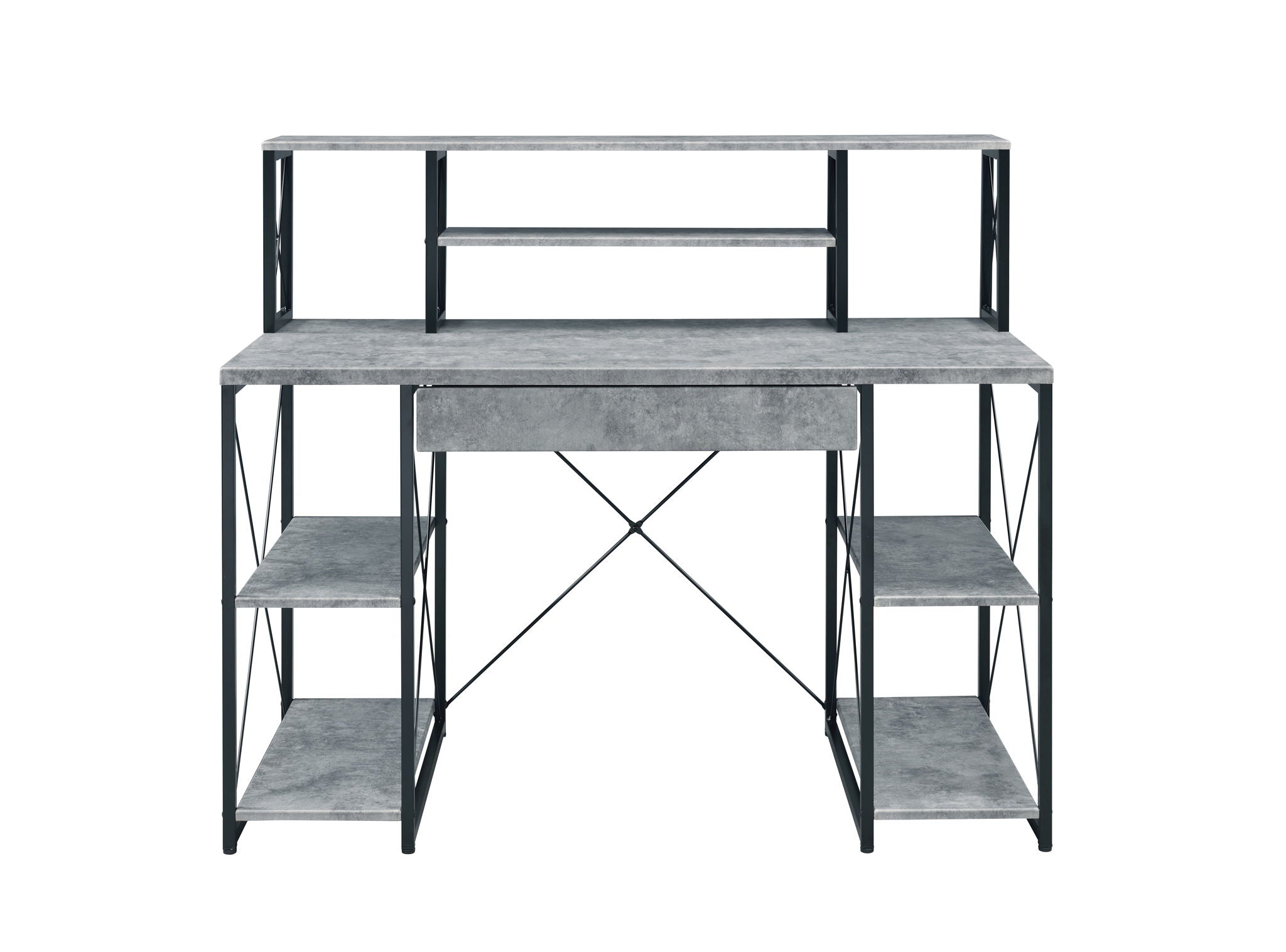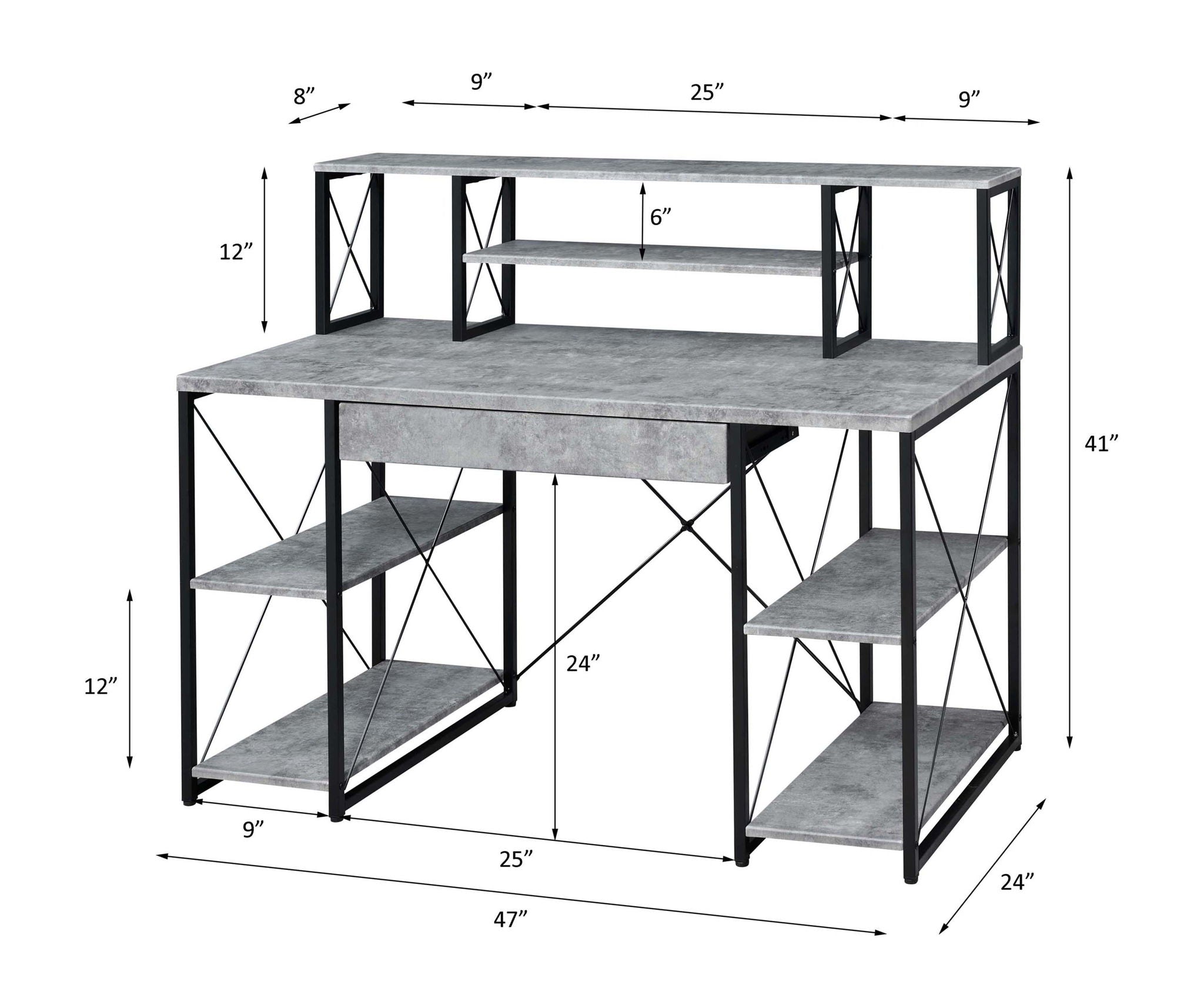 - Ample Storage: The desk features a spacious drawer with smooth side metal glides and eight open compartments, including two fixed top shelves and four fixed base shelves, providing ample storage for organization.
