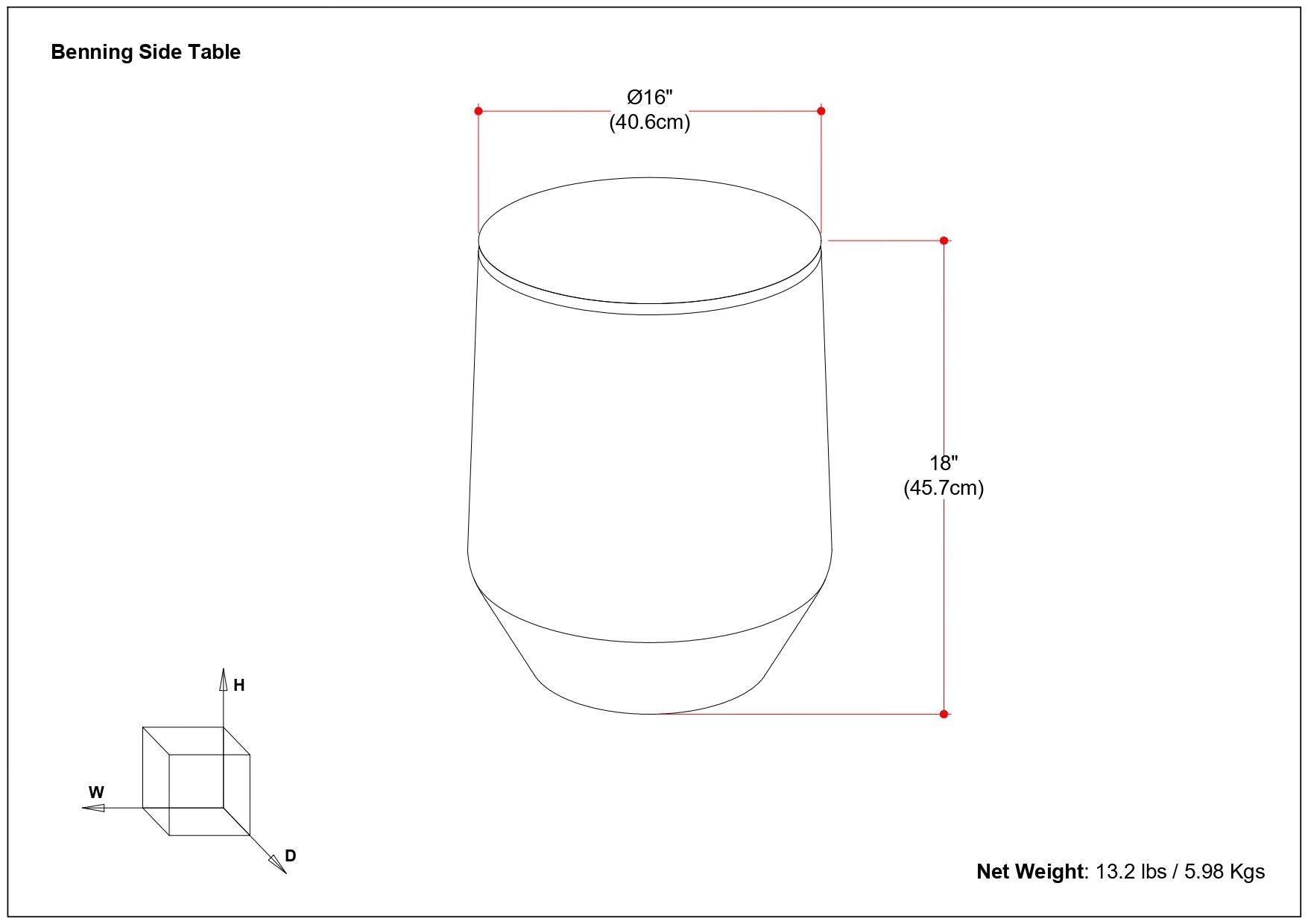 16.0"W x 16.0"D x 18.0"H - 13.2 lb
