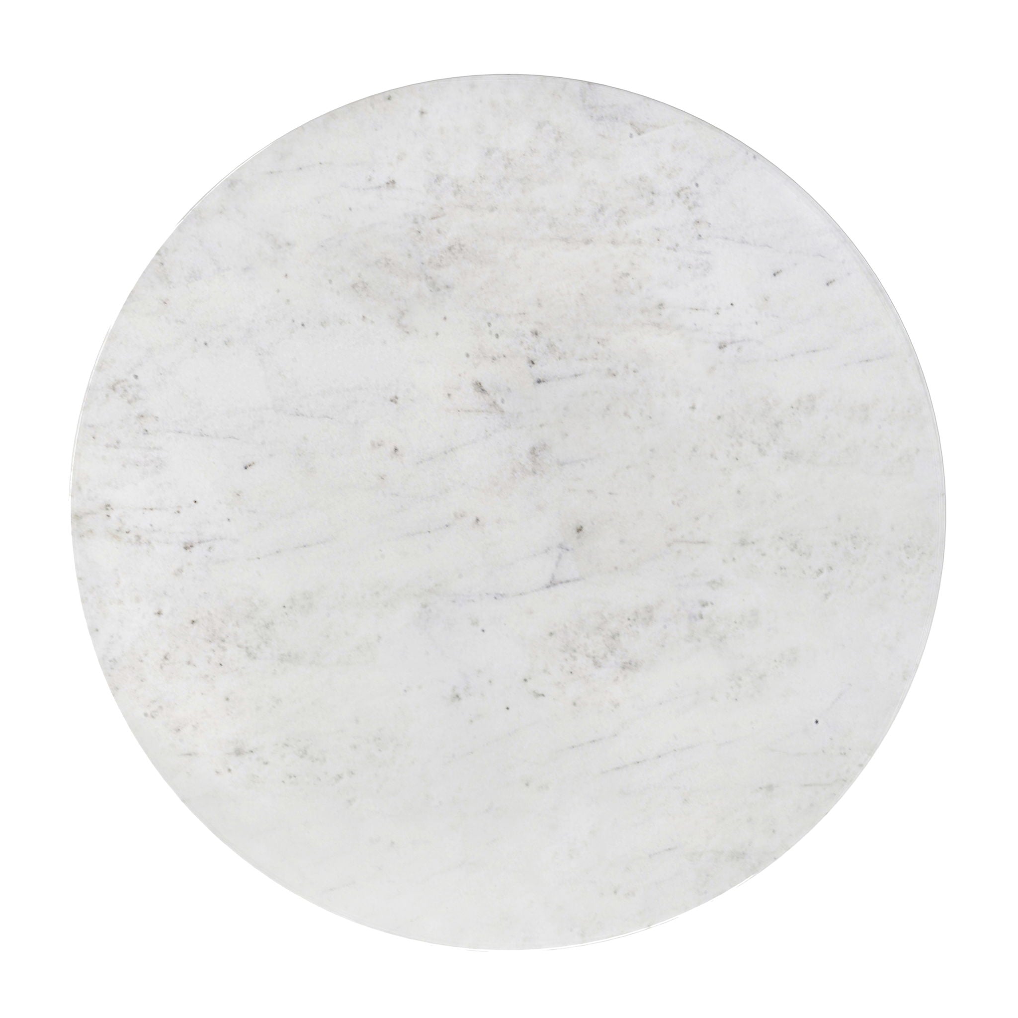 - Hand-finished base in Antique Brass and White Marble tabletop.