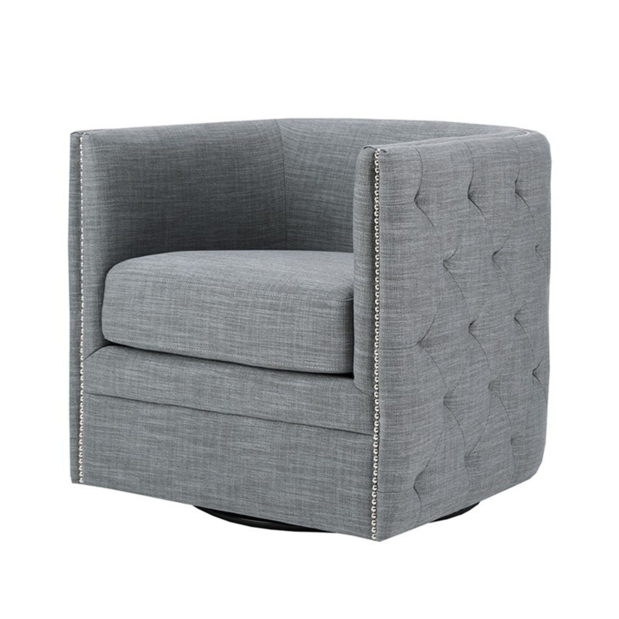 Capstone - Swivel Barrel Chair With Nailhead Accents And Button Tufting - Gray